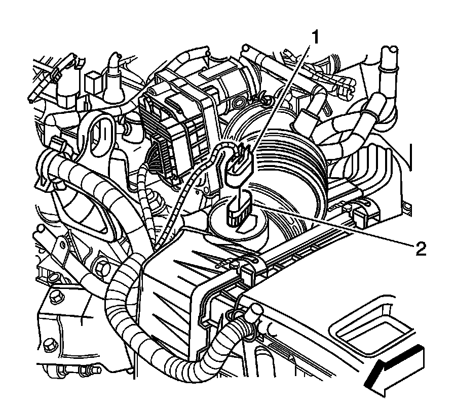 1. Disconnect the engine harness electrical connector (1) from the mass air flow (MAF)/intake air temperature (IAT) sensor.