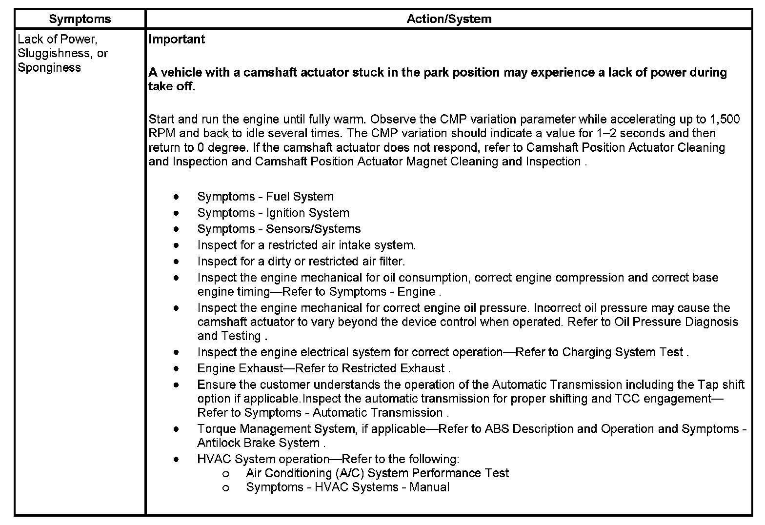 - Locate the correct symptom. Perform the tests and inspections associated with the symptom.