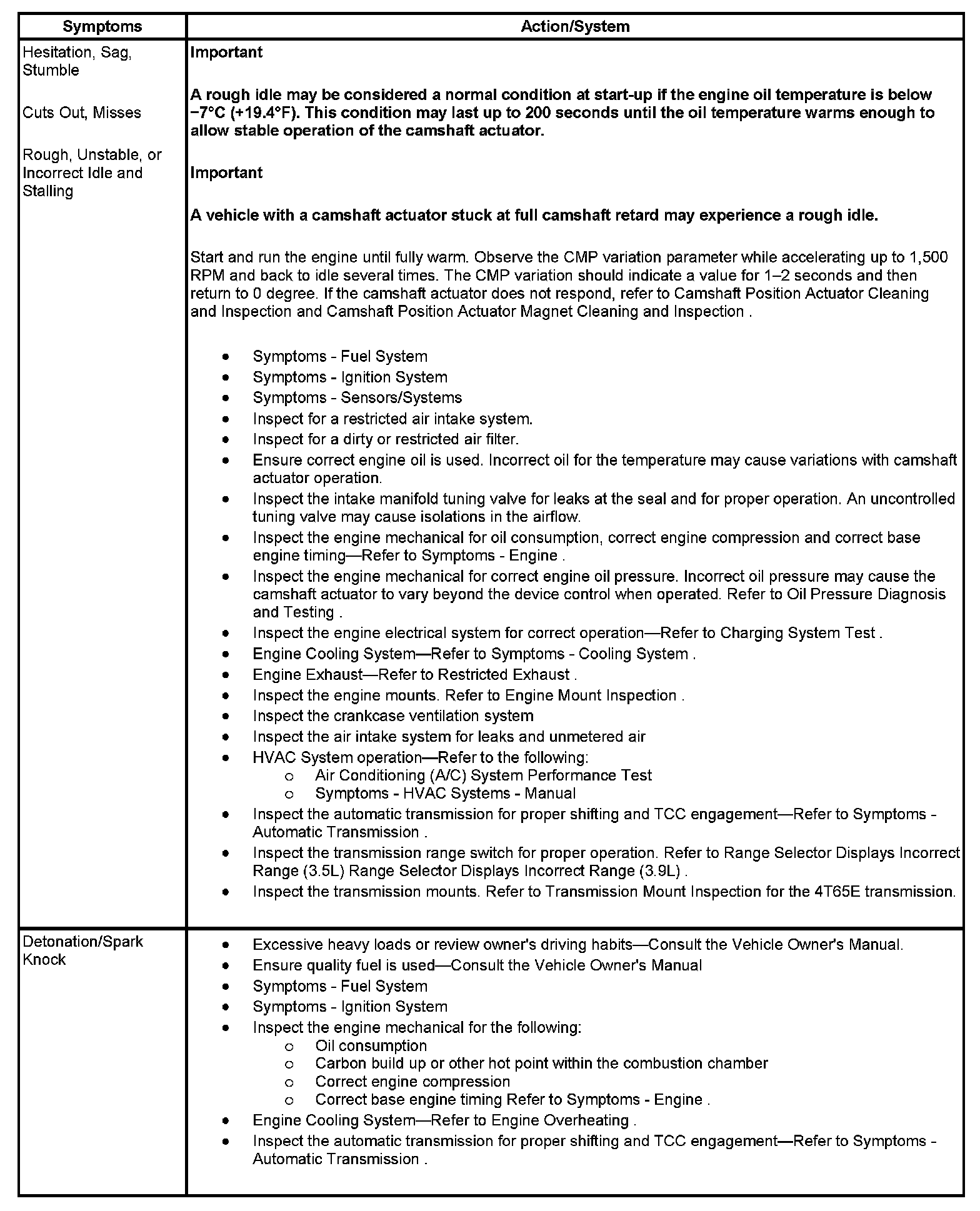 - Symptoms - Engine Controls