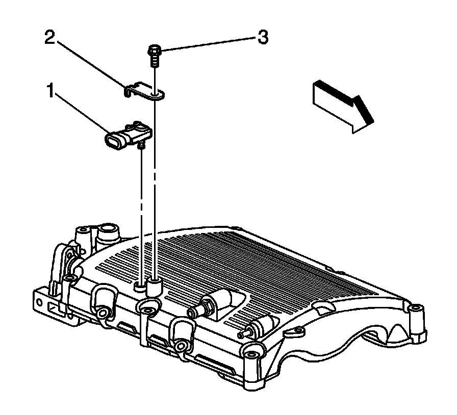 2. Install the MAP sensor retaining bracket (2) and bolt (3).