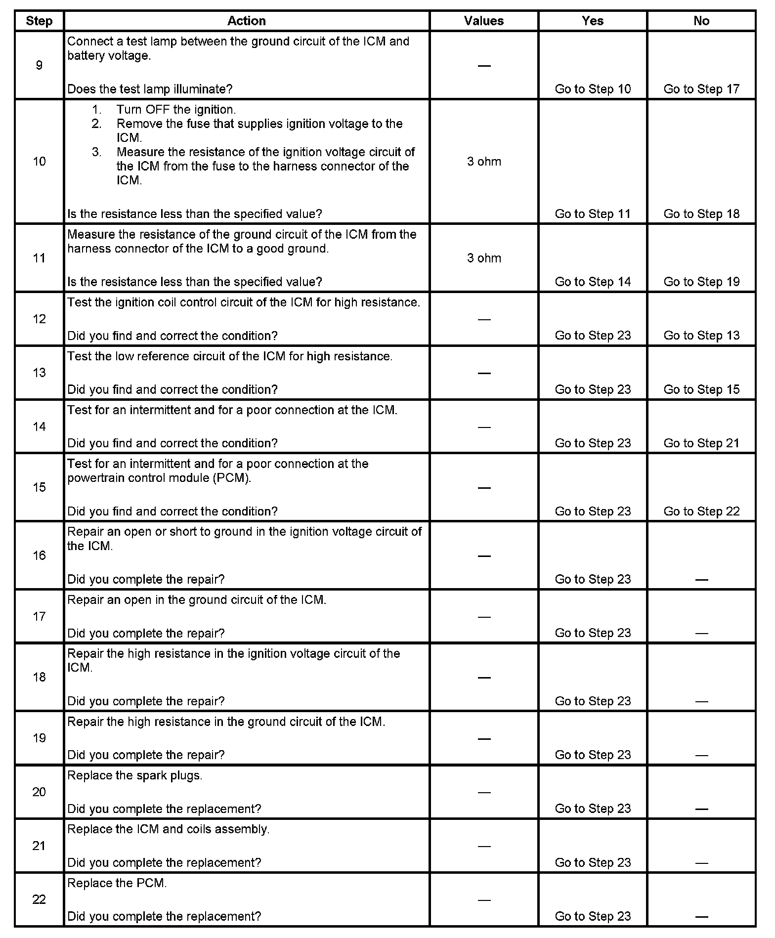 The powertrain control module (PCM) controls each dual-tower ignition coil by transmitting timing pulses on the ignition coil control circuit to the ICM for the proper coil to enable a spark event.