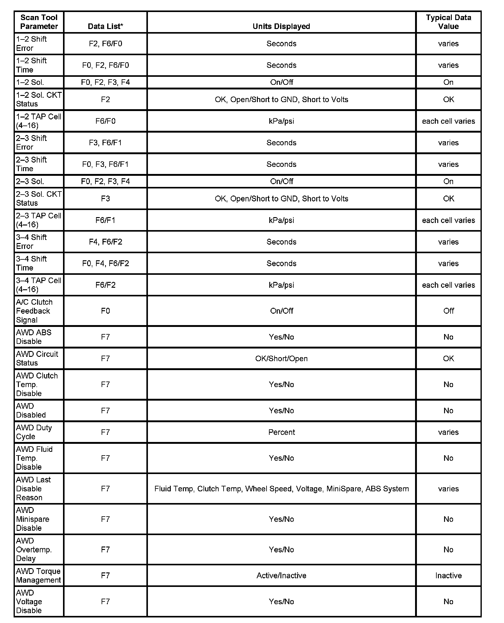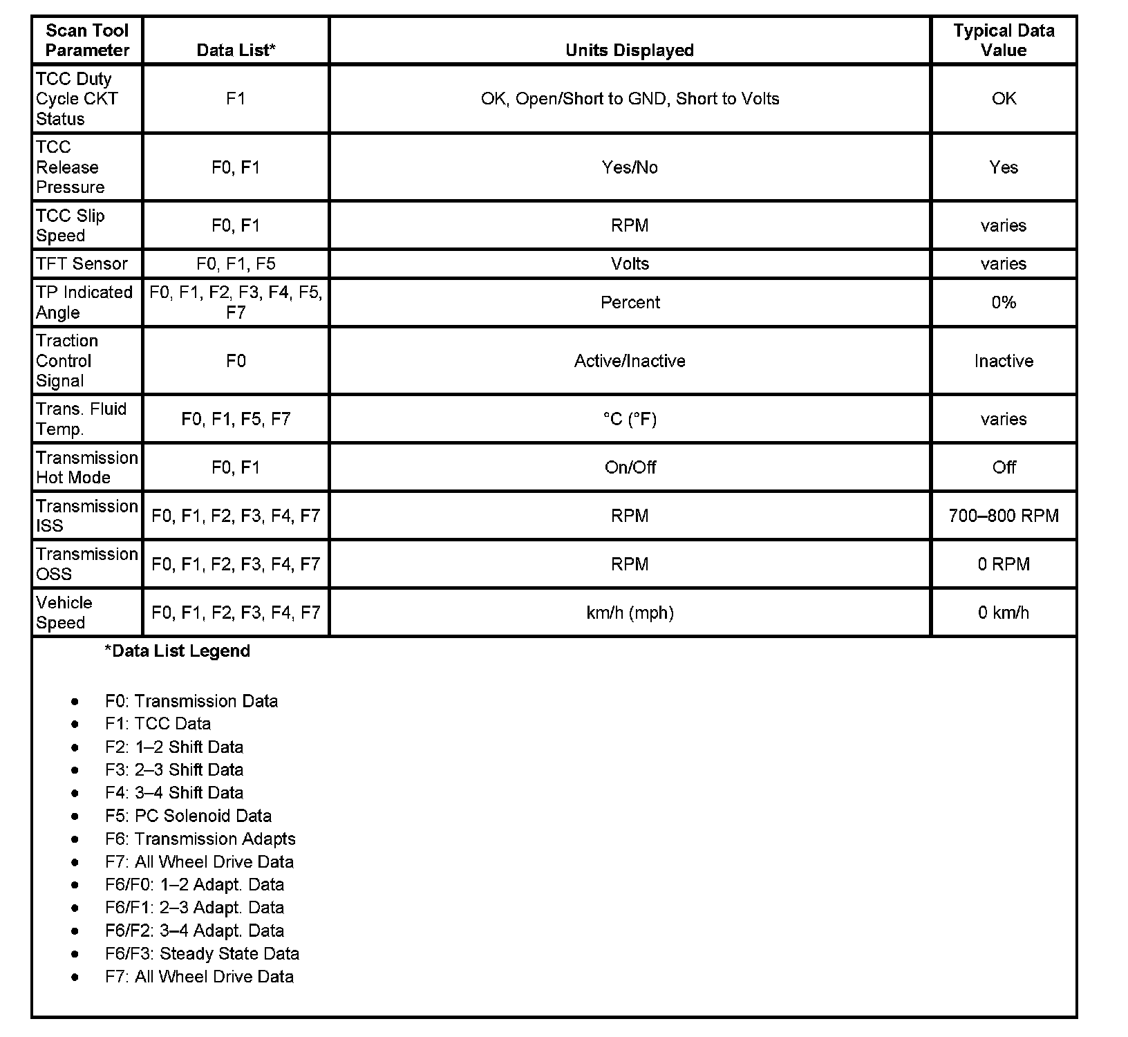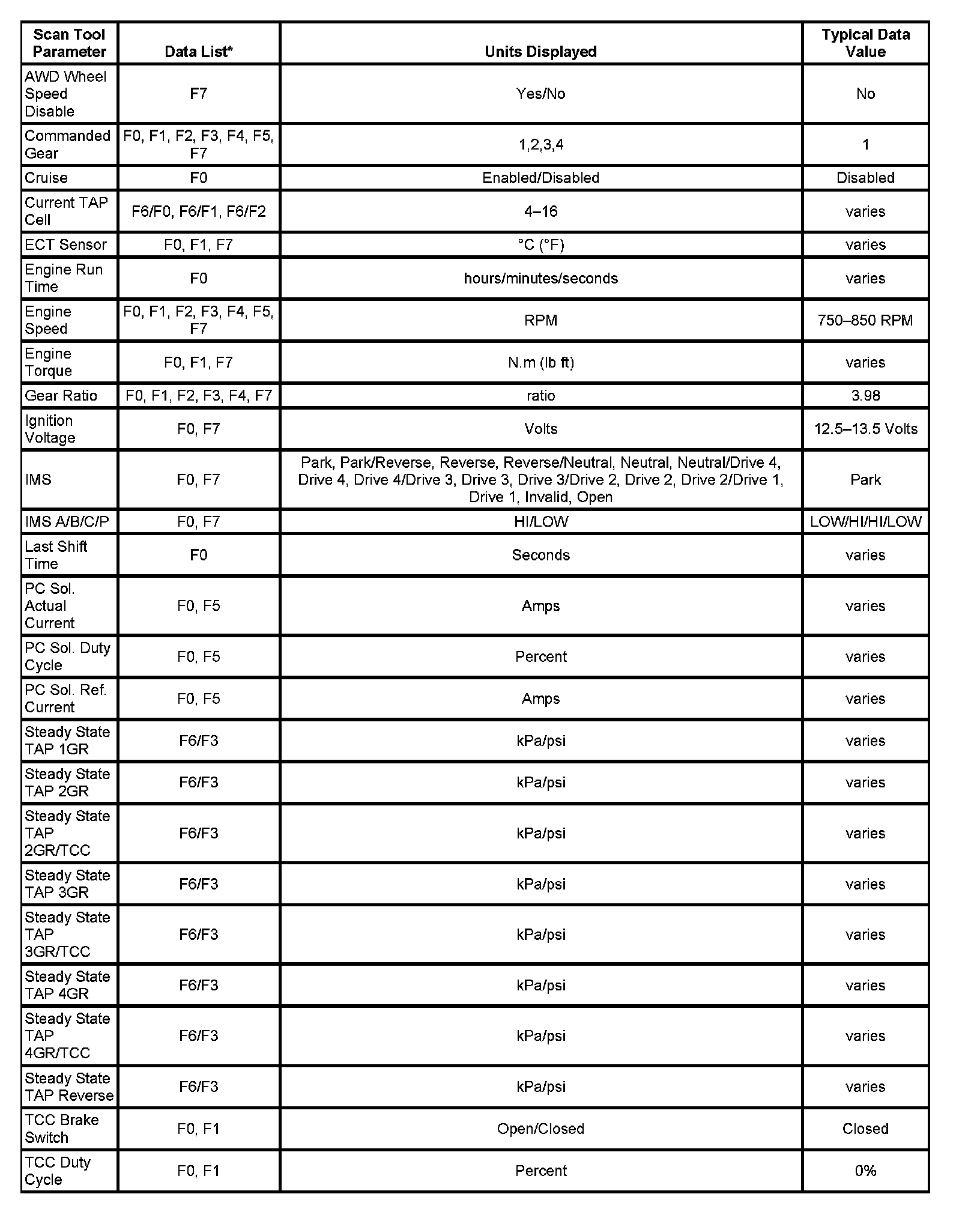 Only the parameters listed below are used in this manual for diagnosing. If a scan tool displays other parameters, the values are not recommended by General Motors for use in diagnosis.