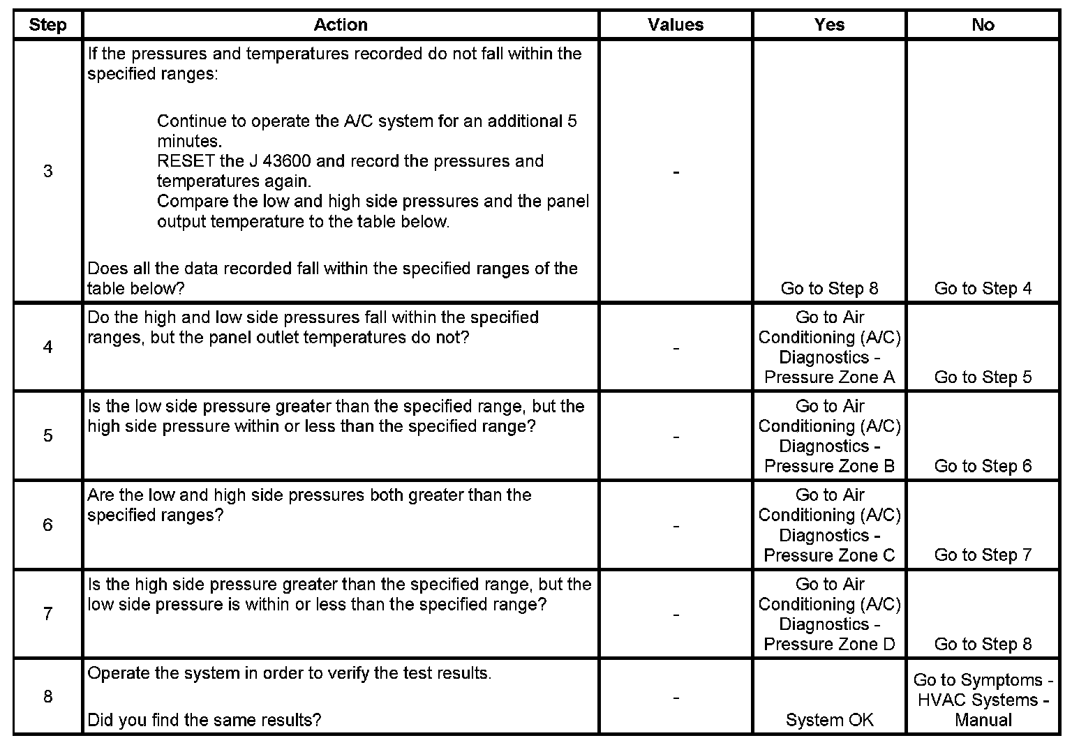 1. This step determines if the A/C system has at least the minimum refrigerant charge required to operate the system without damage.