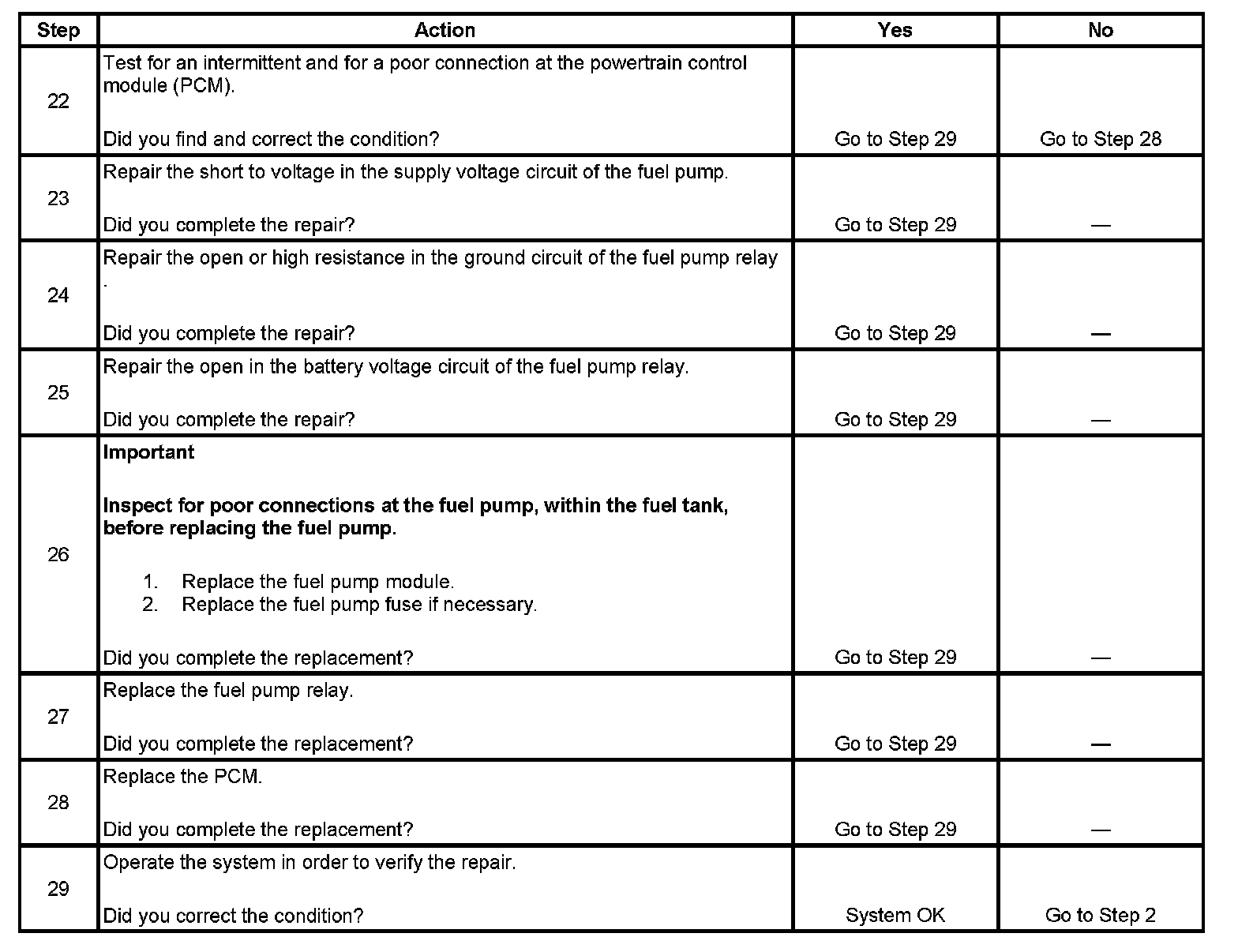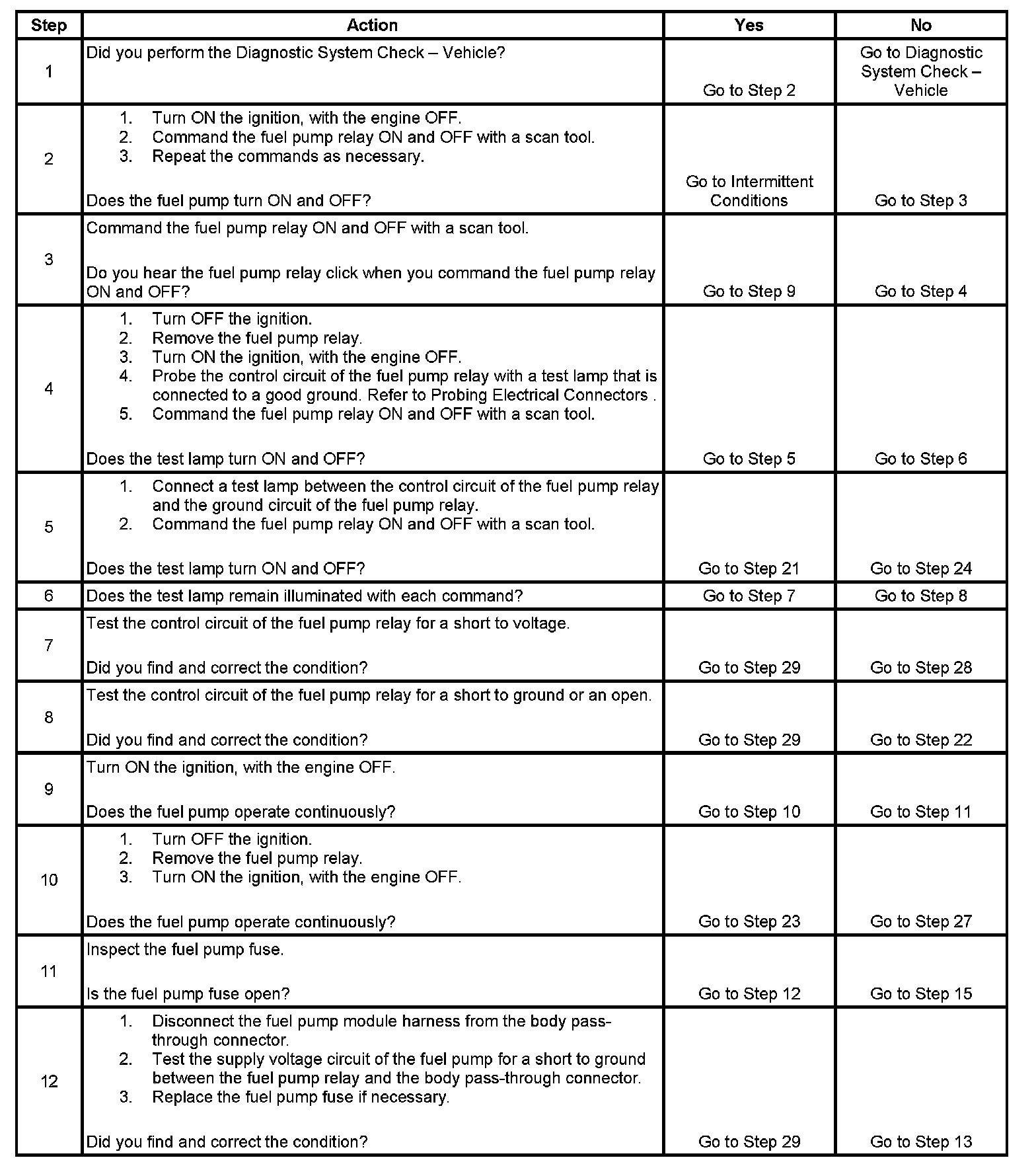 Fuel Pump Electrical Circuit Diagnosis