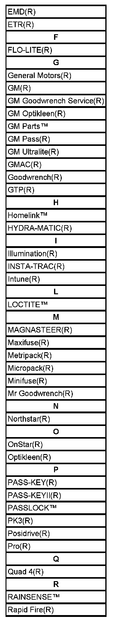 Listed below are Registered Trademarks ((R)) or Non-Registered Trademarks ((TM)) which may appear in this Service Data.