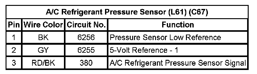 A/C Refrigerant Pressure Sensor (L61) (C67)