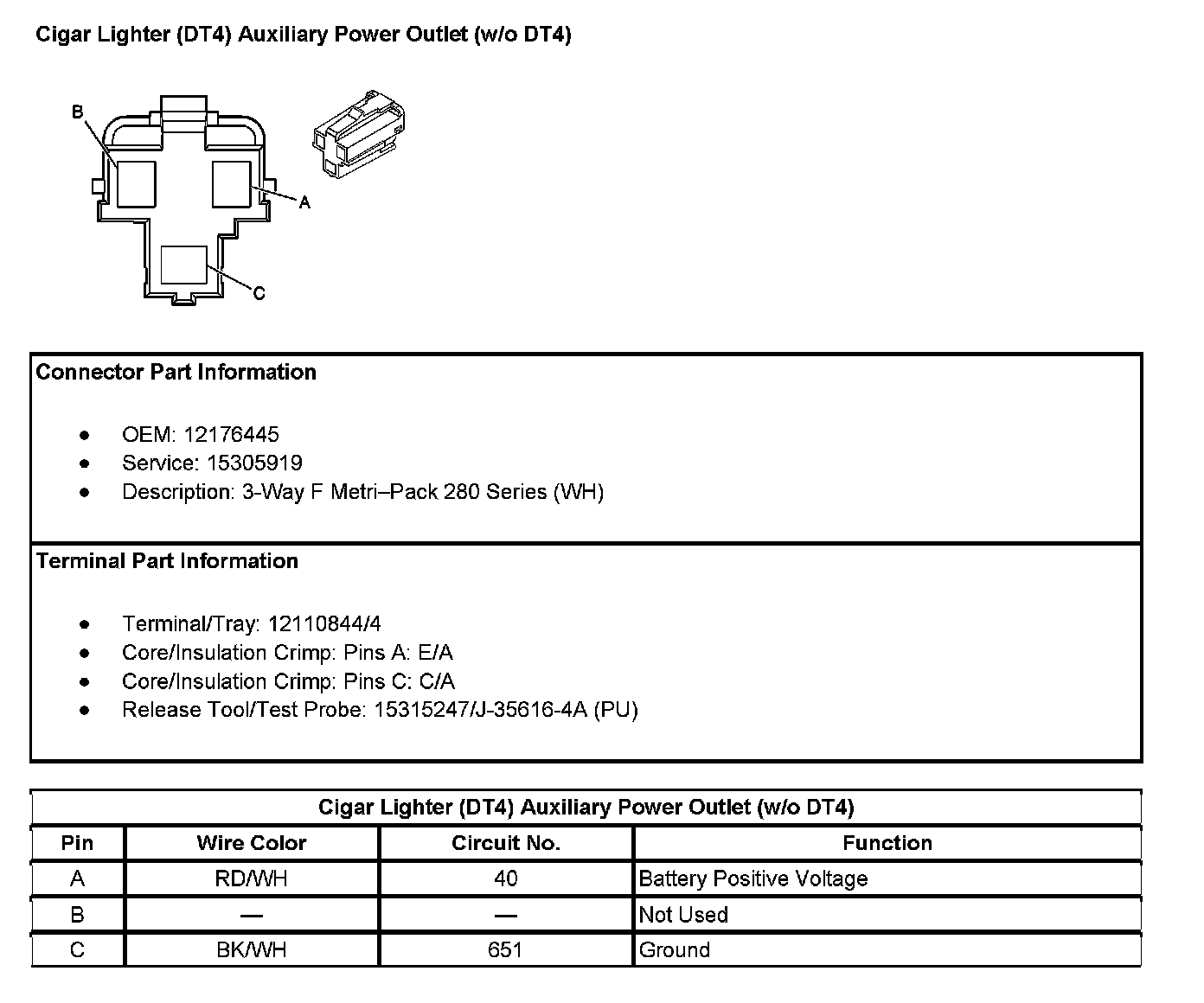 Cigar Lighter (With RPO Code DT4) Auxiliary Power Outlet (Without RPO Code DT4):
