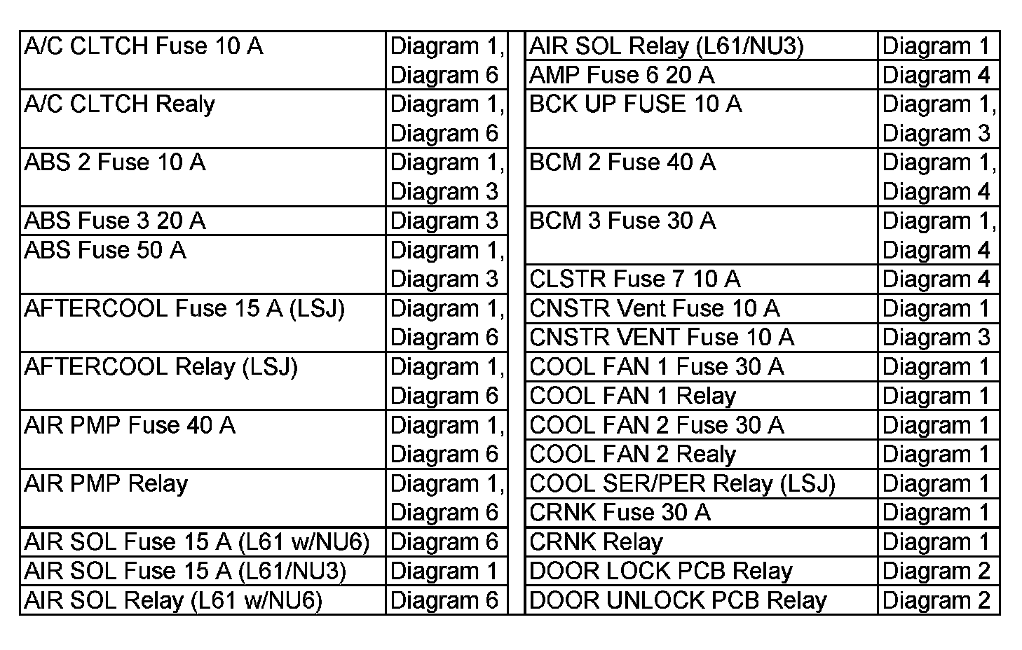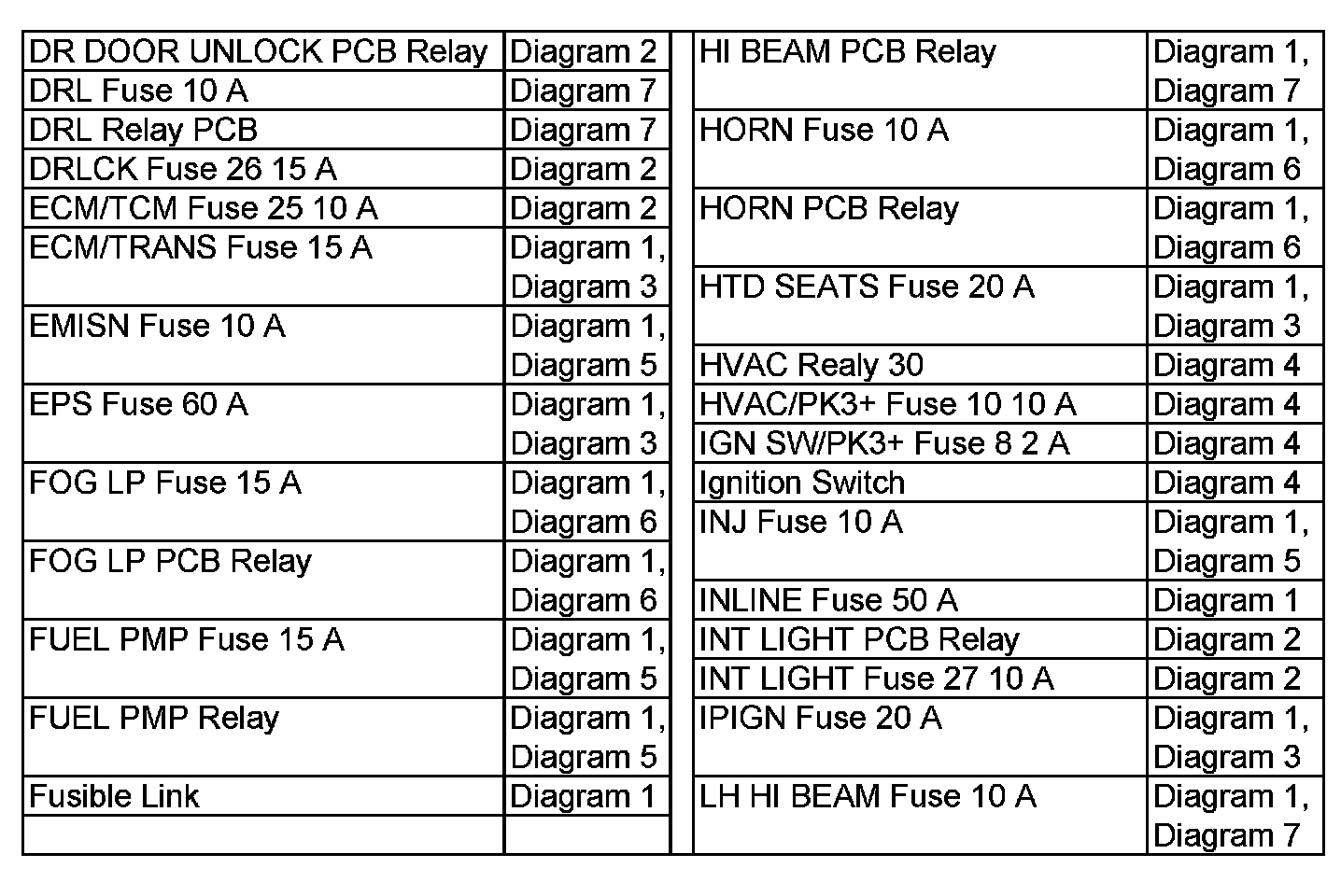 Power Distribution Diagram Index