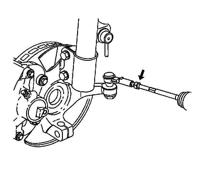 6. Install the front wheel. Refer to Tire and Wheel Removal and Installation (4 Lug Wheel) Tire and Wheel Removal and Installation (5 Lug Wheel).