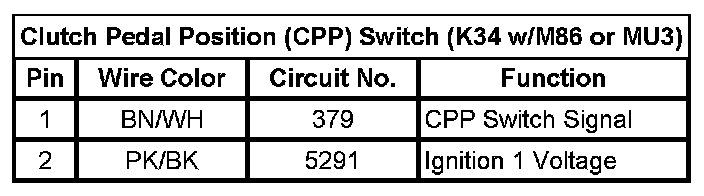 Clutch Pedal Position (CPP) Switch (K34 w/M86 or MU3)