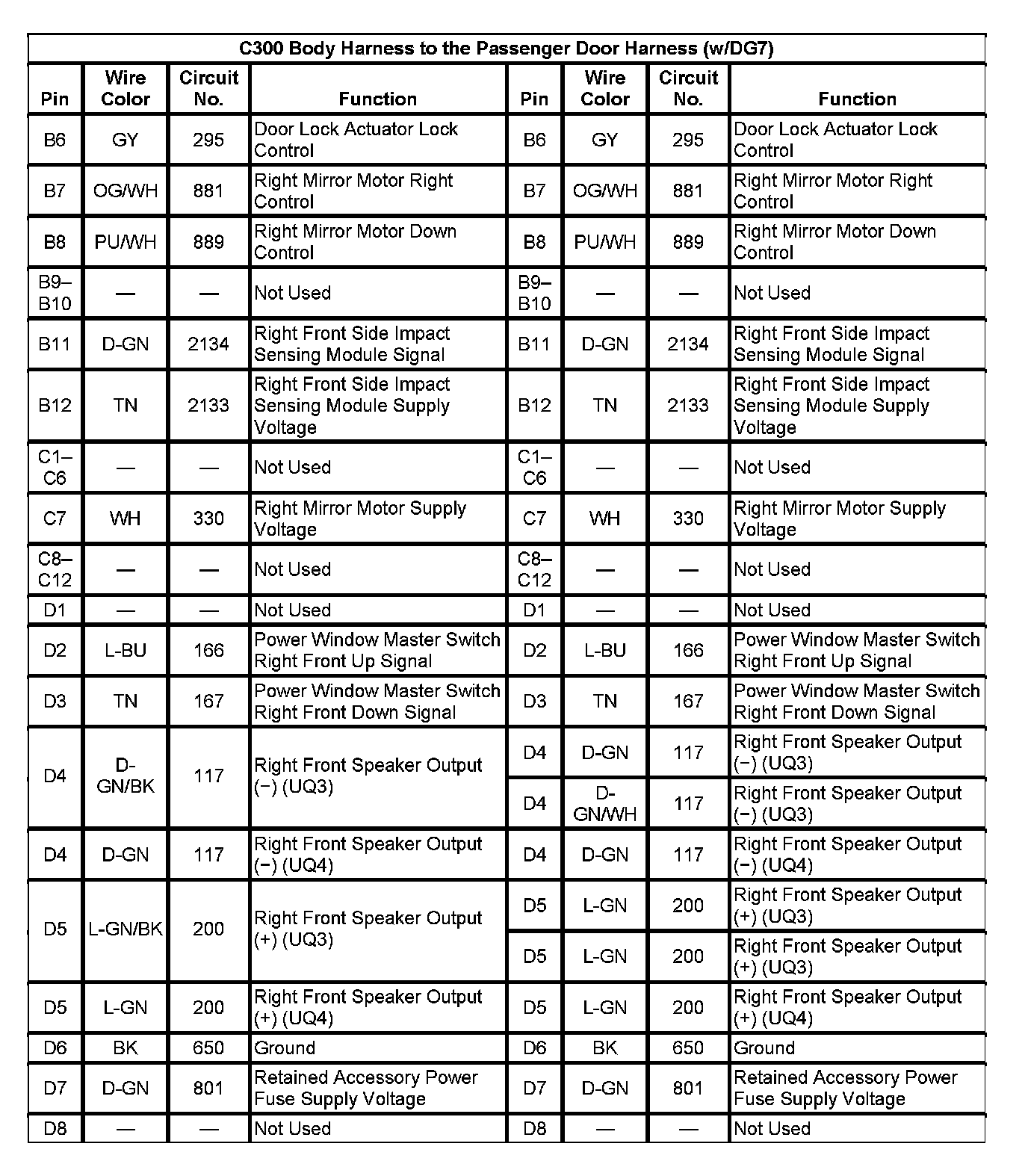 C300 Body Harness To The Passenger Door Harness (With RPO Code DG7):