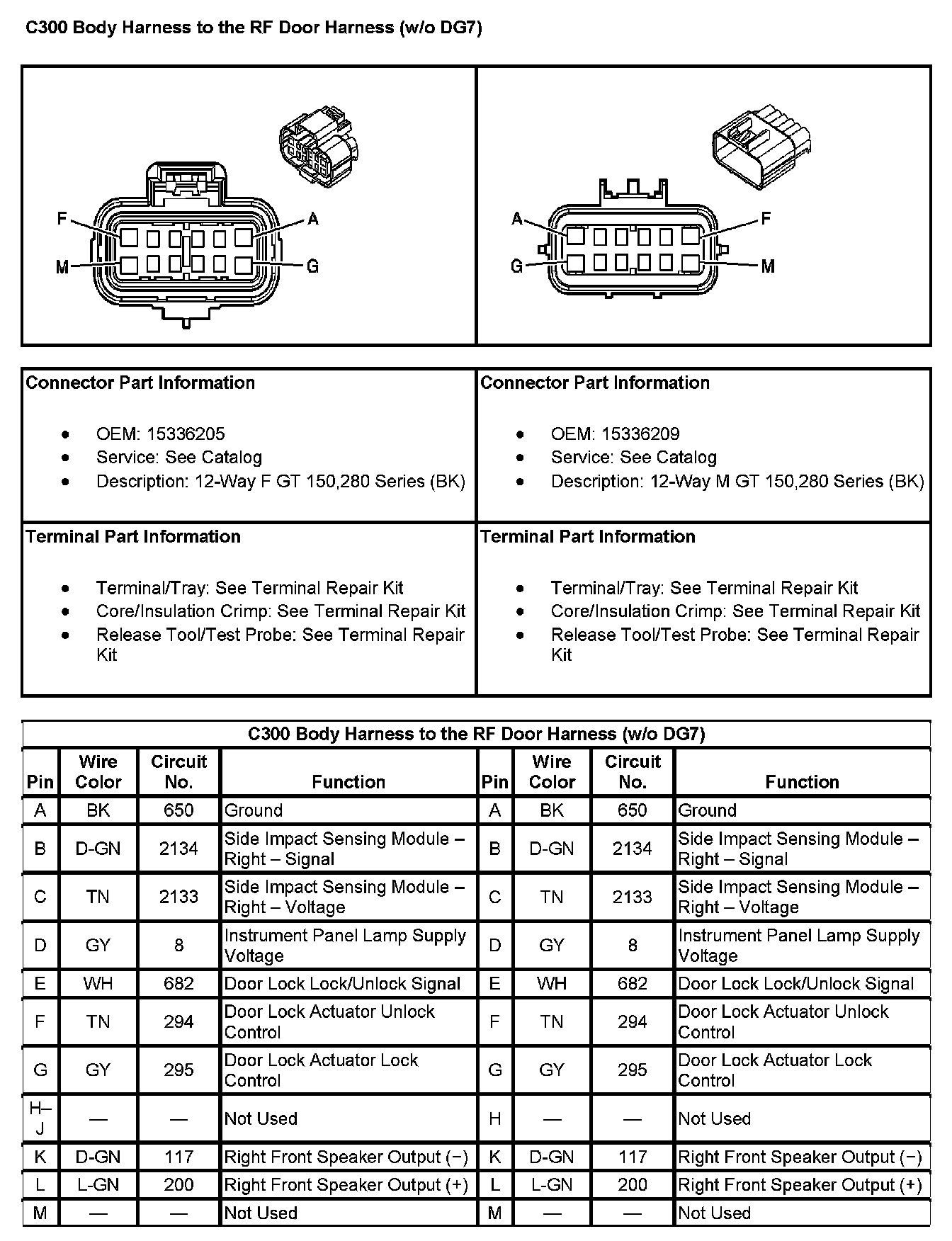 C300 Body Harness To The RF Door Harness (Without RPO Code DG7):