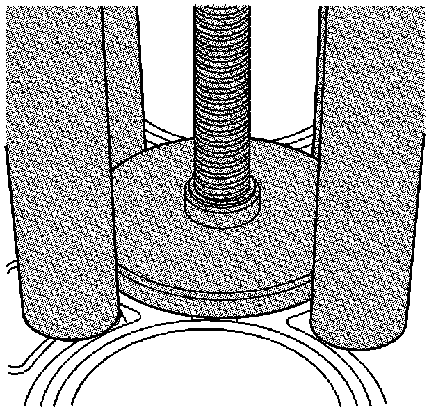 8. Hold the threaded shaft of the EN 45680-852 cylinder bore sleeve puller upward in order to retain the shoe alignment to the bottom of the cylinder bore sleeve.