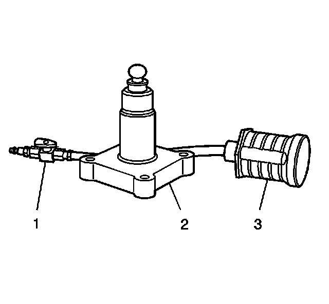 10. Remove the EN 45680-851 fixture and EN 45680-853 cylinder bore sleeve installer assembly (1) from the cylinder block (2).
