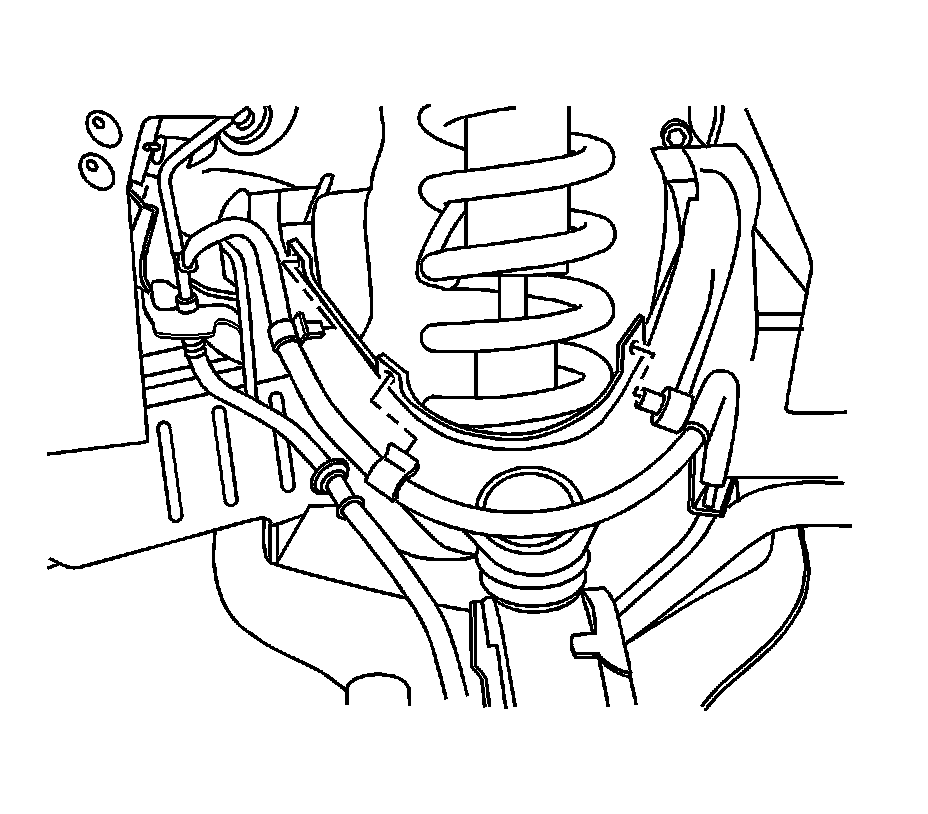 Important: Note the orientation of the wheel speed sensor harness to the steering knuckle to ensure correct installation.