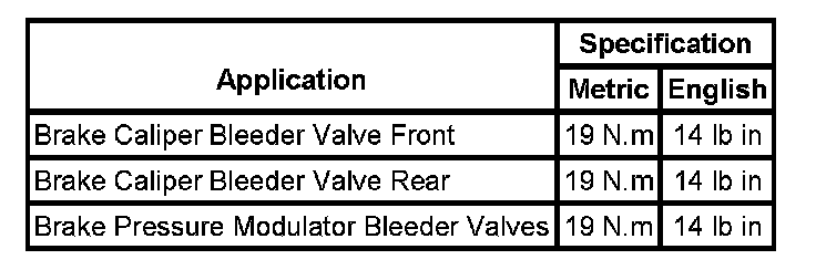 Brake Component Specifications: