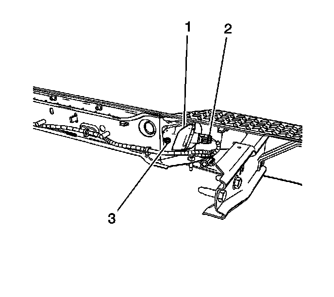 3. Remove the nut (3) retaining the license lamp to the bumper.