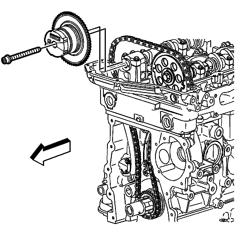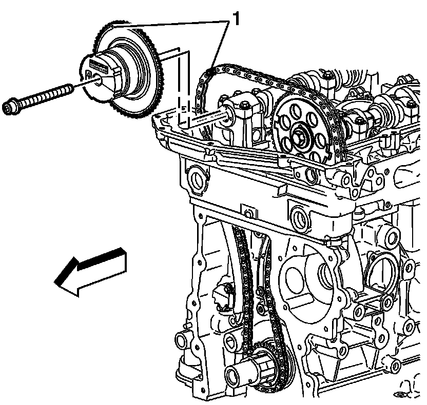 Notice: The camshaft actuator must be fully advanced during installation. Engine damage may occur if the camshaft actuator is not fully advanced.