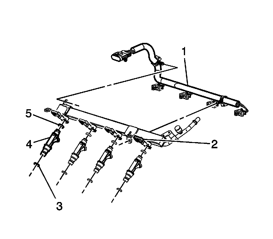 * Remove the fuel rail assembly carefully in order to prevent damage to the injector electrical connector terminals and the injector spray tips. Support the fuel rail after the fuel rail is removed in order to avoid damaging the fuel rail components.