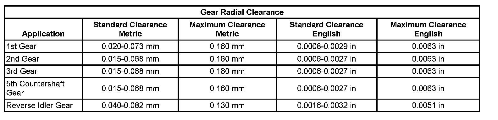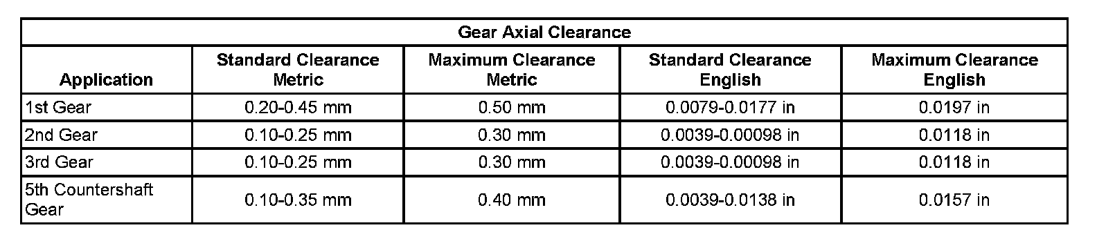 Transmission Clearance SpecificationsGear Axial Clearance: