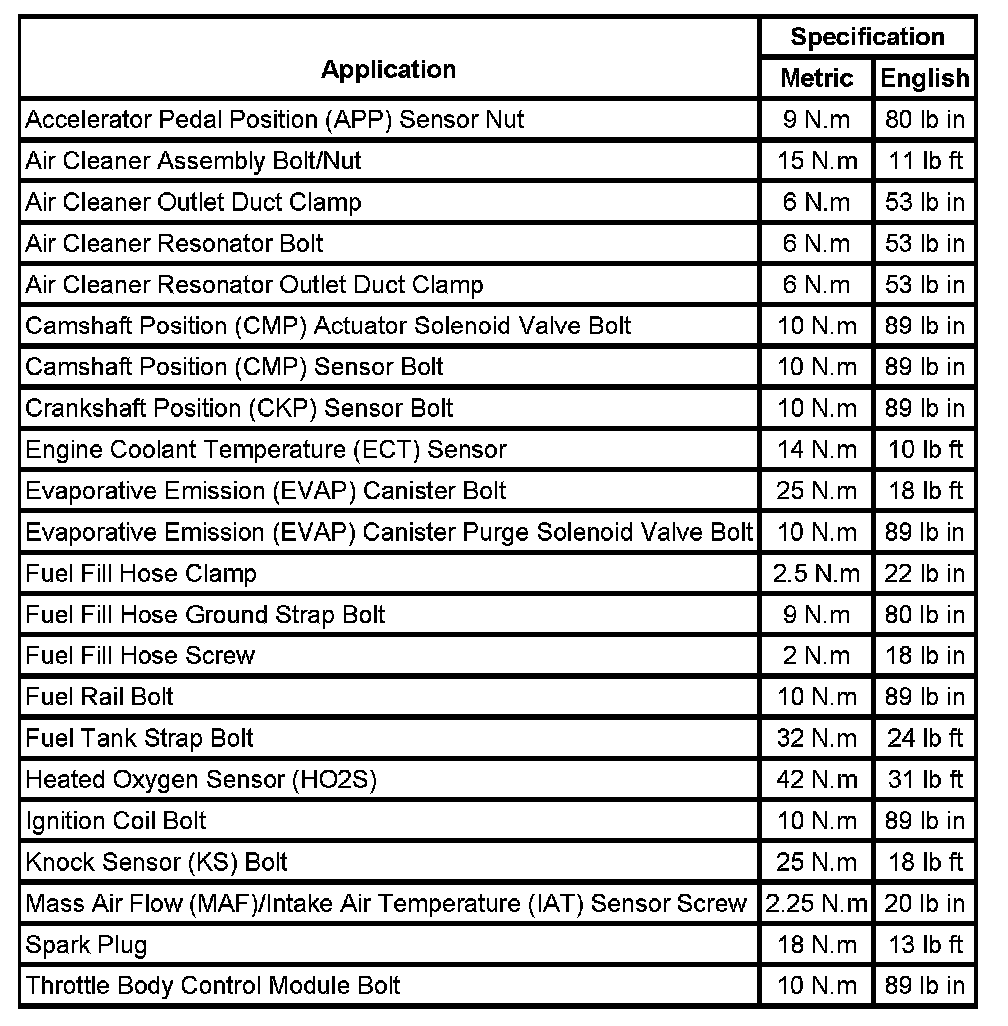 Fastener Tightening Specifications