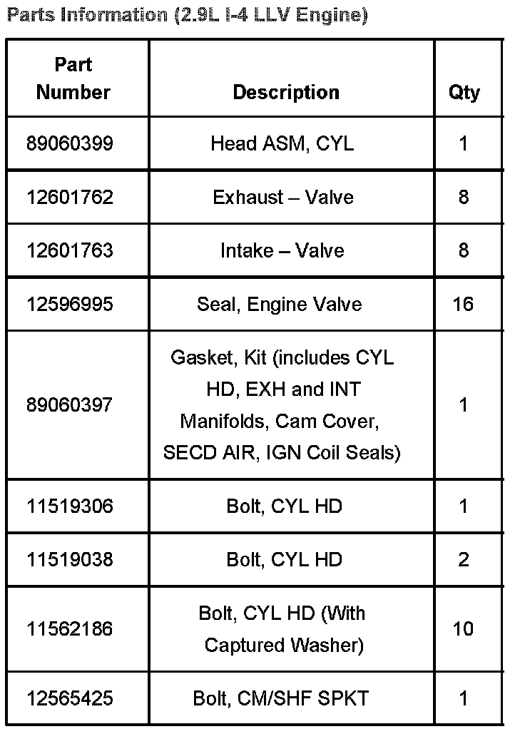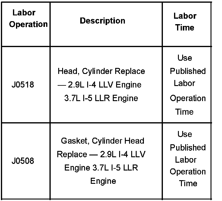 Information On New In-Vehicle Service Procedure for Removal/Installation of LLV, LLR Cylinder Head