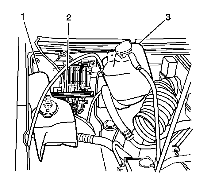 3. Remove the coolant reservoir to wheelhouse fastener (3).