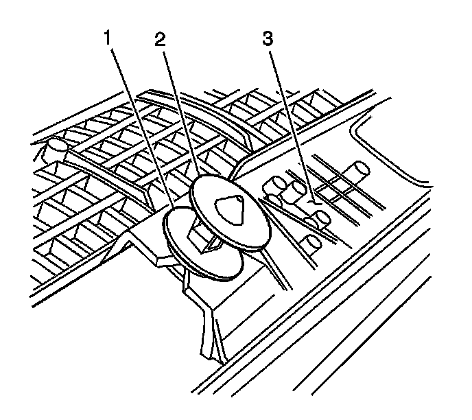 5. Ensure the foam washers (2) are secure to the retainers (1) prior to installing the air inlet grille panel (3) to the cowl.