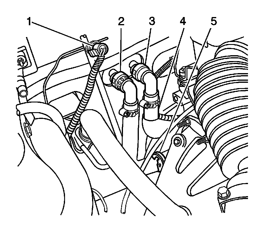 5. Disconnect the heater hose quick connects (2) and (3) from the heater core.