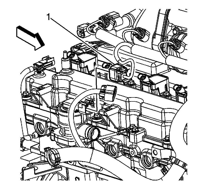 4. Disconnect the engine wiring harness electrical connector (1) from the AIR check valve.