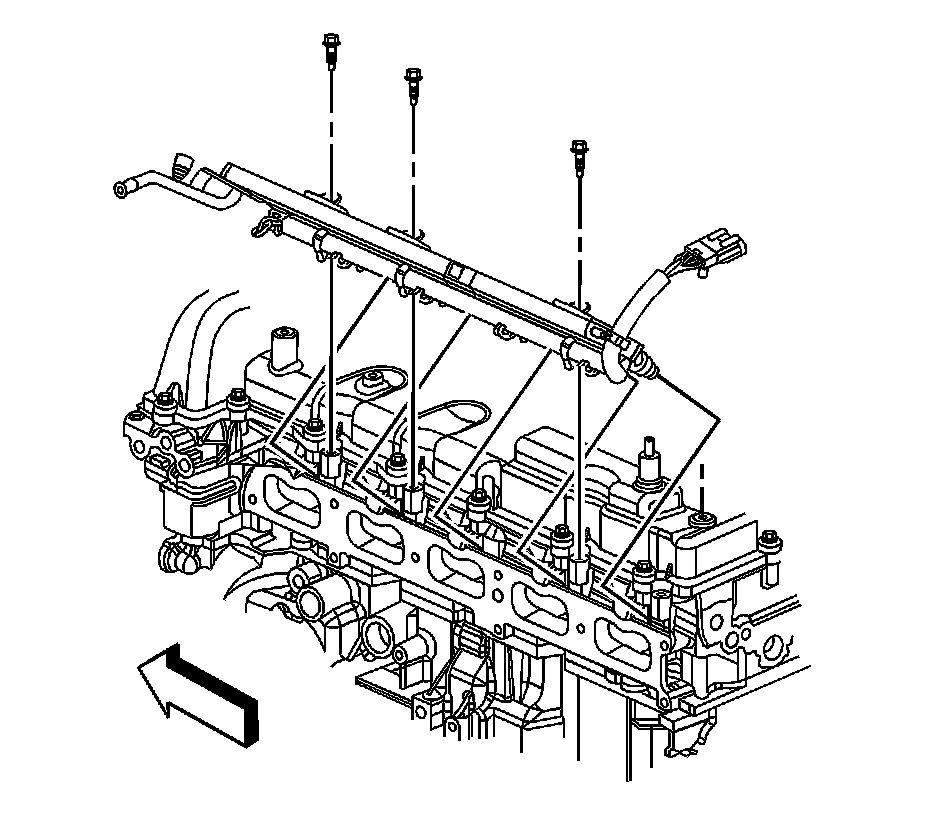 7. Remove the fuel rail bolts.