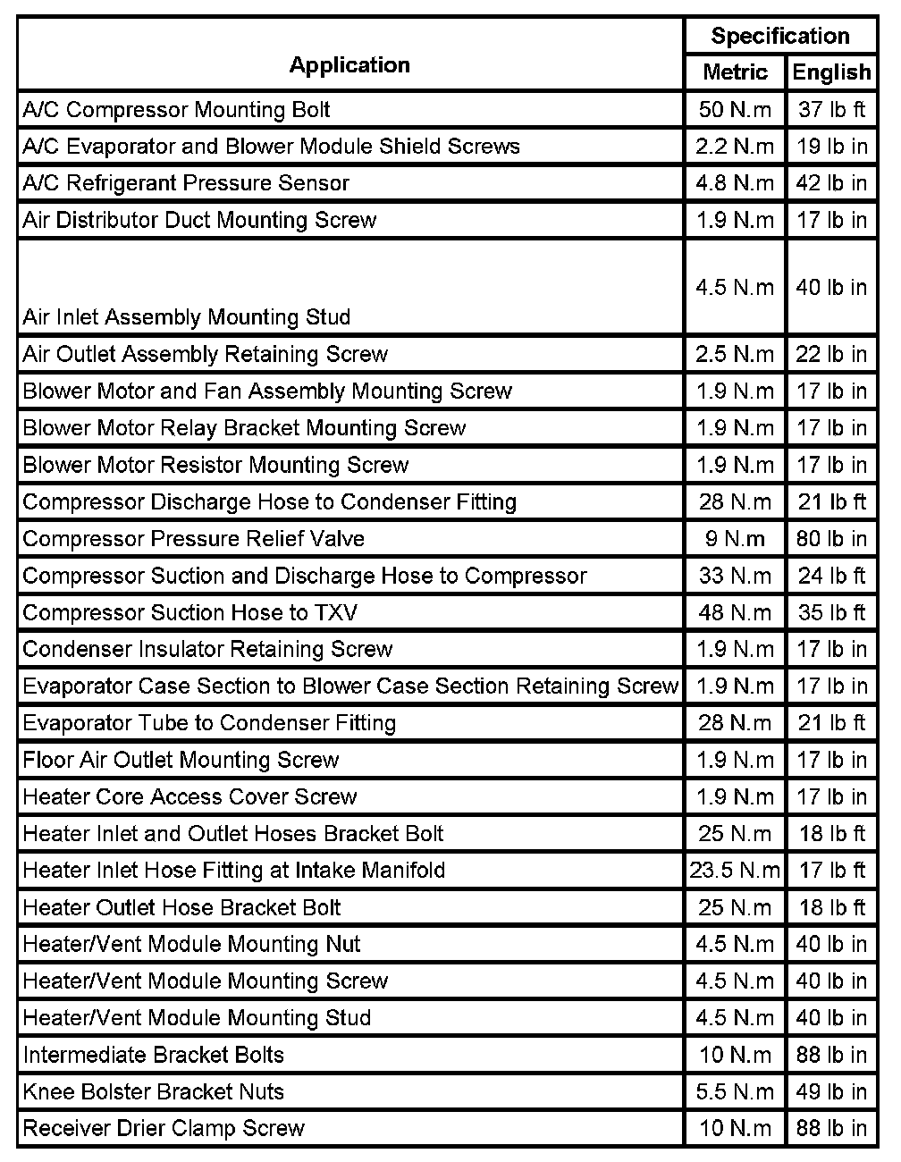 Fastener Tightening Specifications