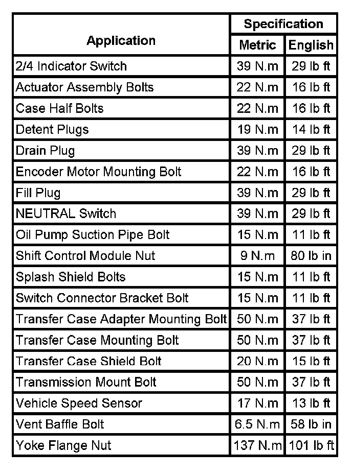 Fastener Tightening Specifications: