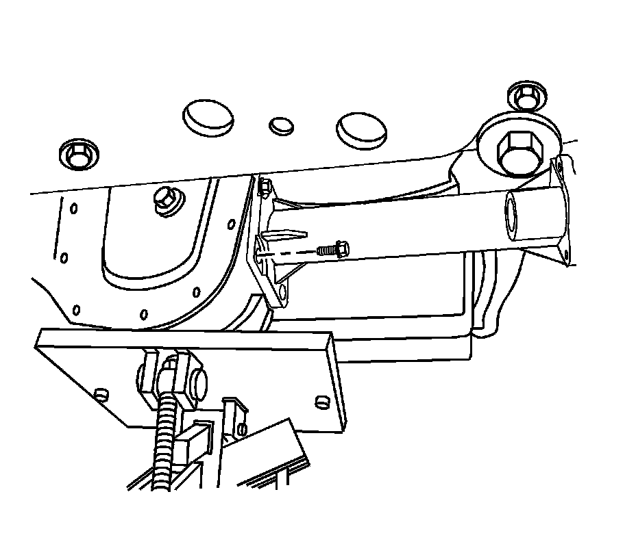 9. Install the differential mounting bracket. Refer to Differential Carrier Assembly Bushing and Bracket Replacement.