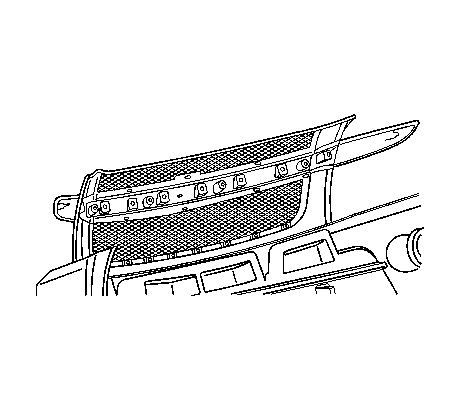 5. Remove the grille from the front fascia by releasing the retainers around the perimeter of the grille.
