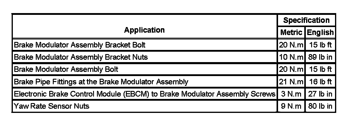 Fastener Tightening Specifications: