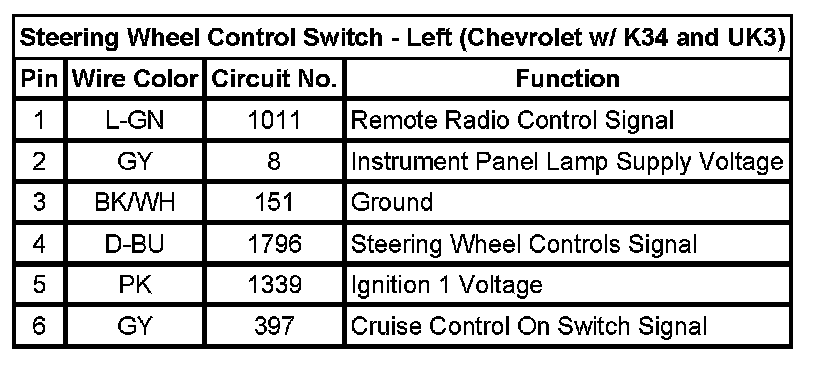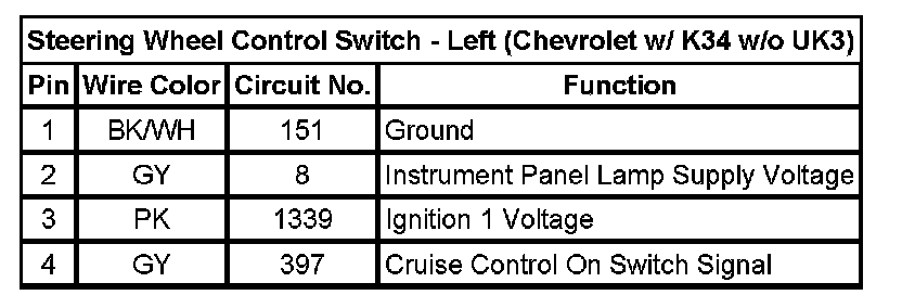 Steering Wheel Control Switch - Left (Chevrolet w/ K34 w/o UK3)