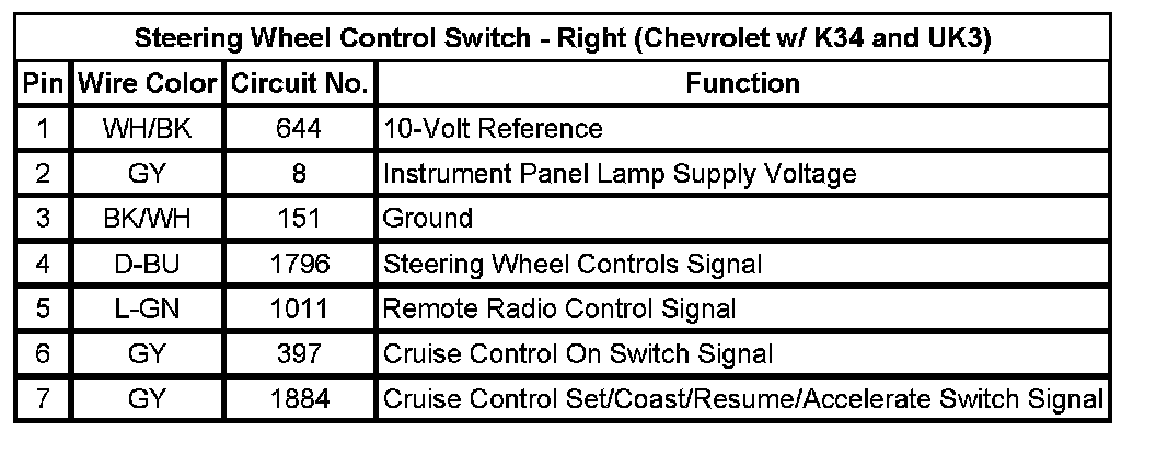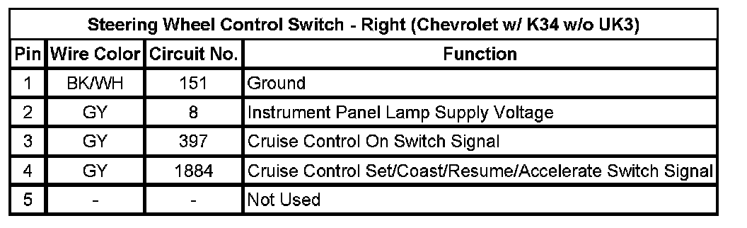Steering Wheel Control Switch - Right (Chevrolet w/ K34 w/o UK3)