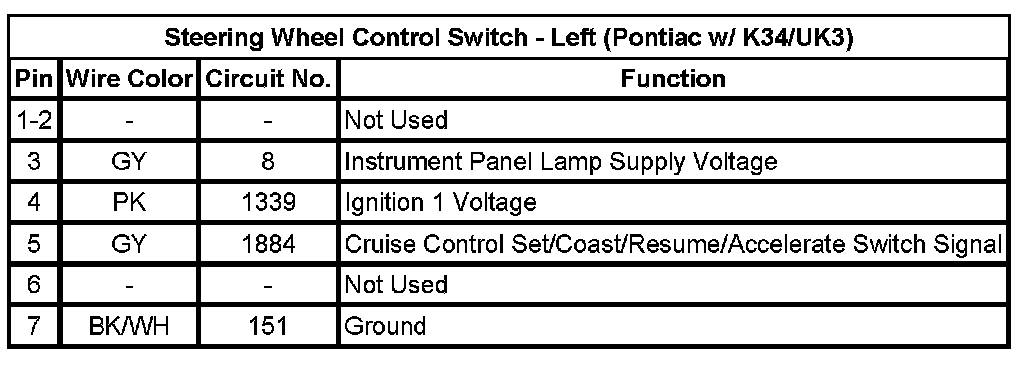 Steering Wheel Control Switch - Left (Pontiac w/ K34/UK3)