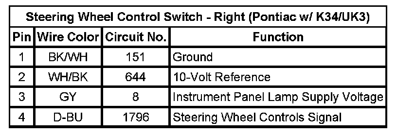 Steering Wheel Control Switch - Right (Pontiac w/ K34/UK3)