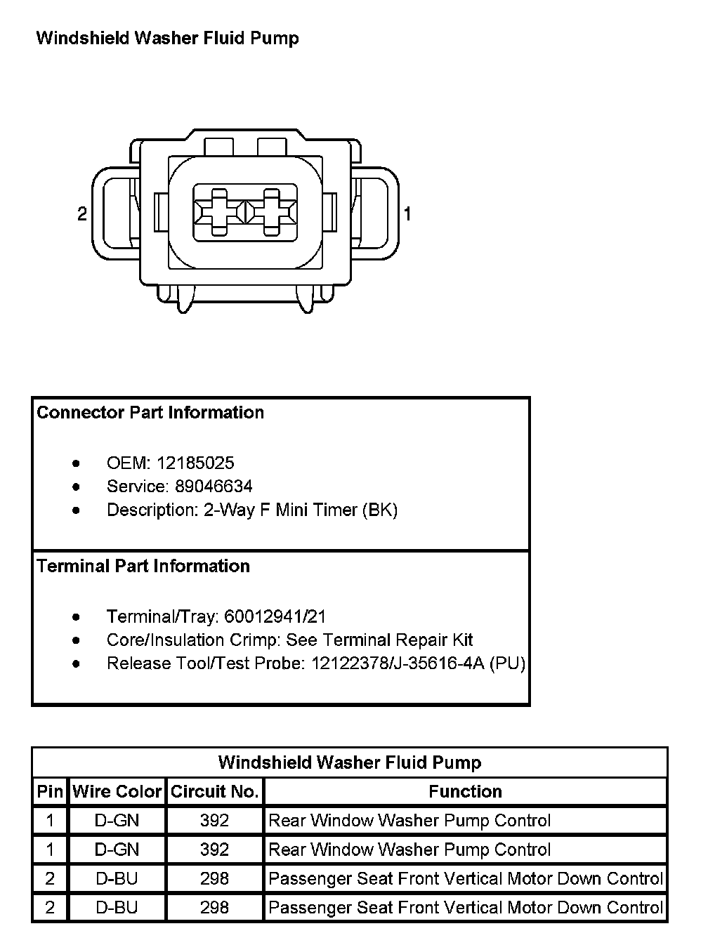 Windshield Washer Fluid Pump: