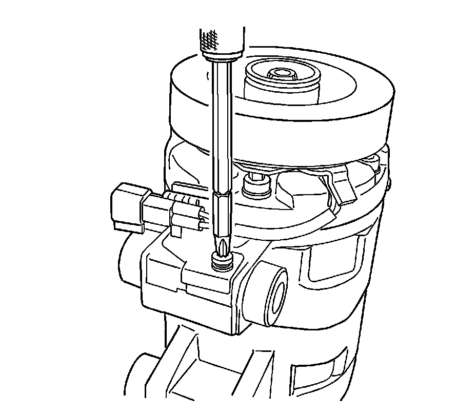 9. Remove the clutch field coil connector bracket screw from the compressor.