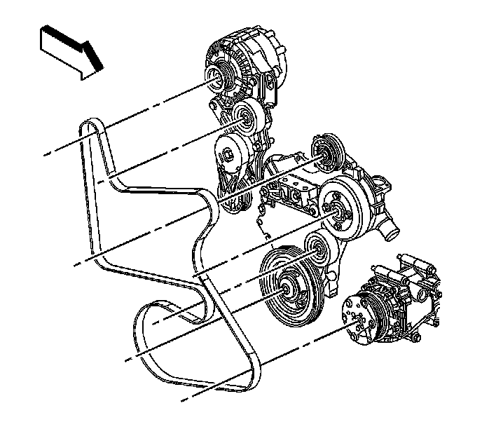 4. Carefully release J 39914 to relieve the drive belt tensioner spring tension.