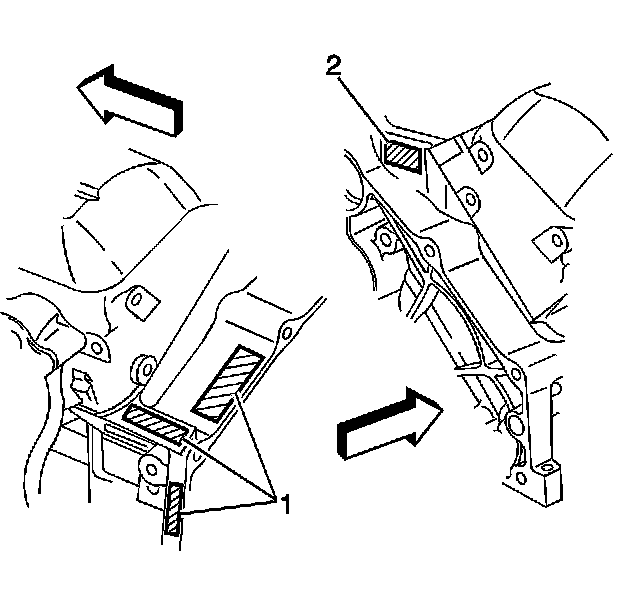 ^ The Vehicle Identification Number (VIN) Derivative is located on the left side rear of the engine block (1) or on the right side rear (2) and typically is a 9 digit number stamped or laser etched onto the engine at the vehicle assembly plant.