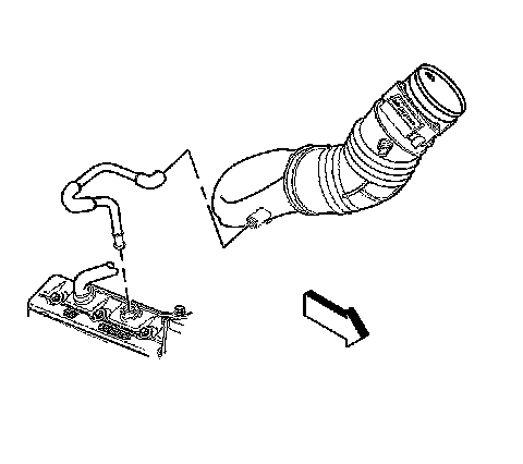 9. Remove the PCV valve hose assembly from the intake manifold and the valve rocker arm cover.