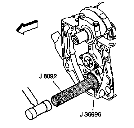 2. Use the J 36996 and the J 8092 in order to install the balance shaft.