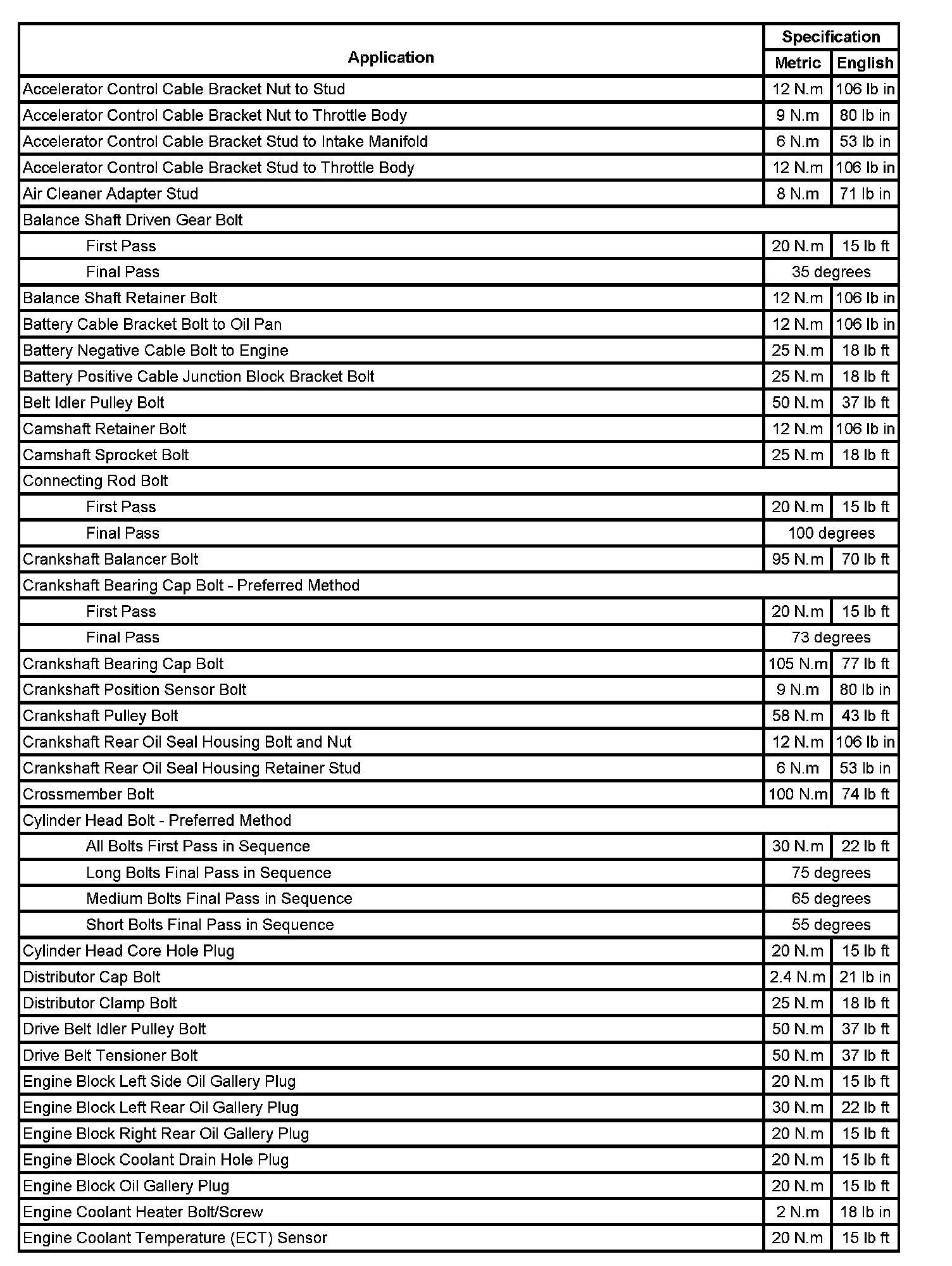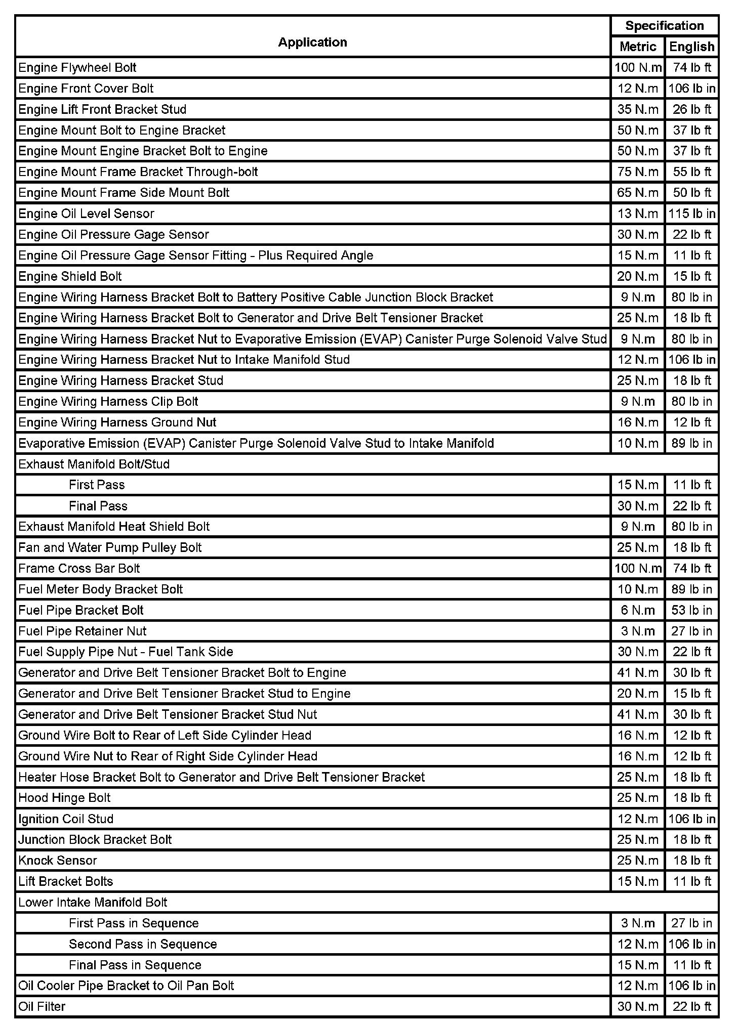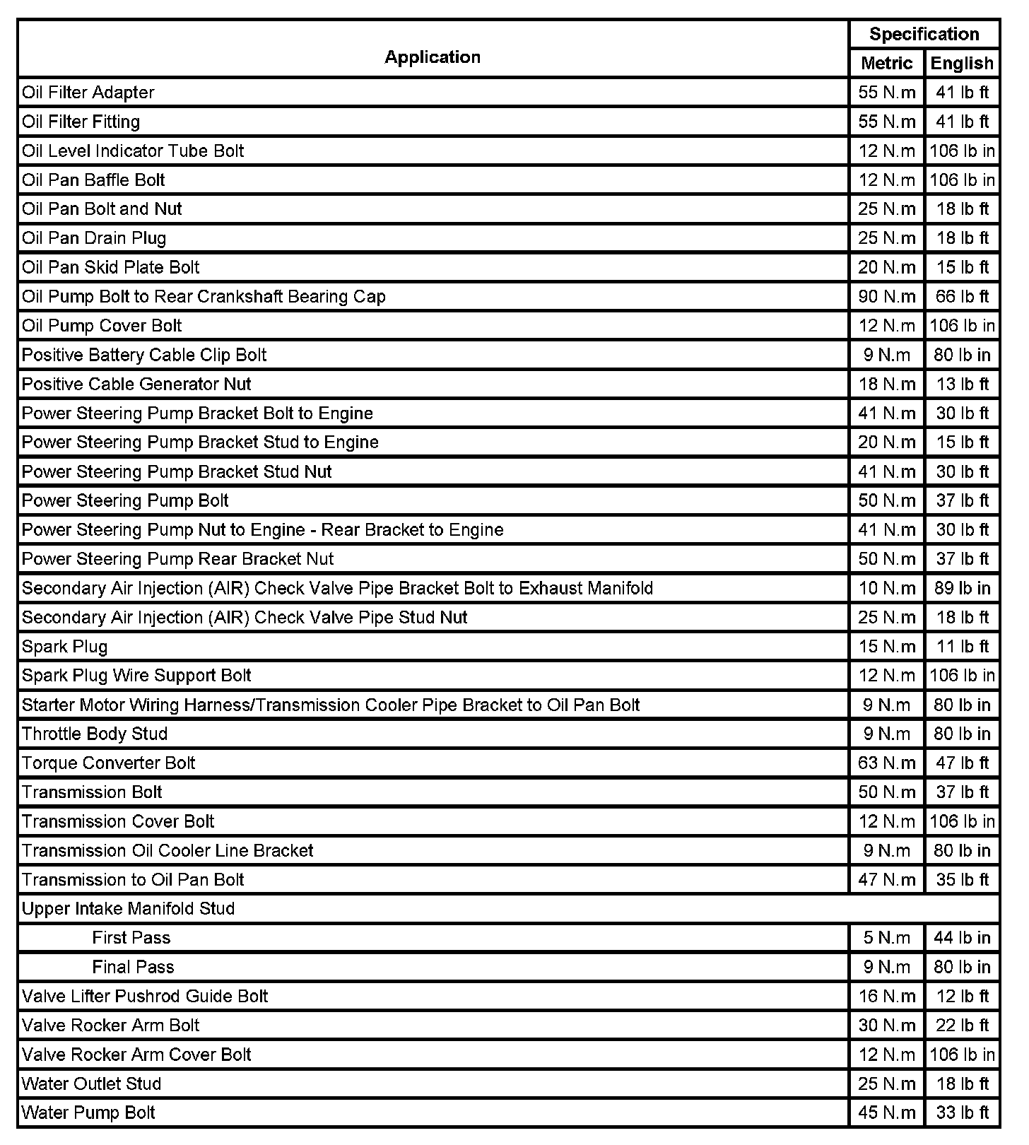 Fastener Tightening Specifications: