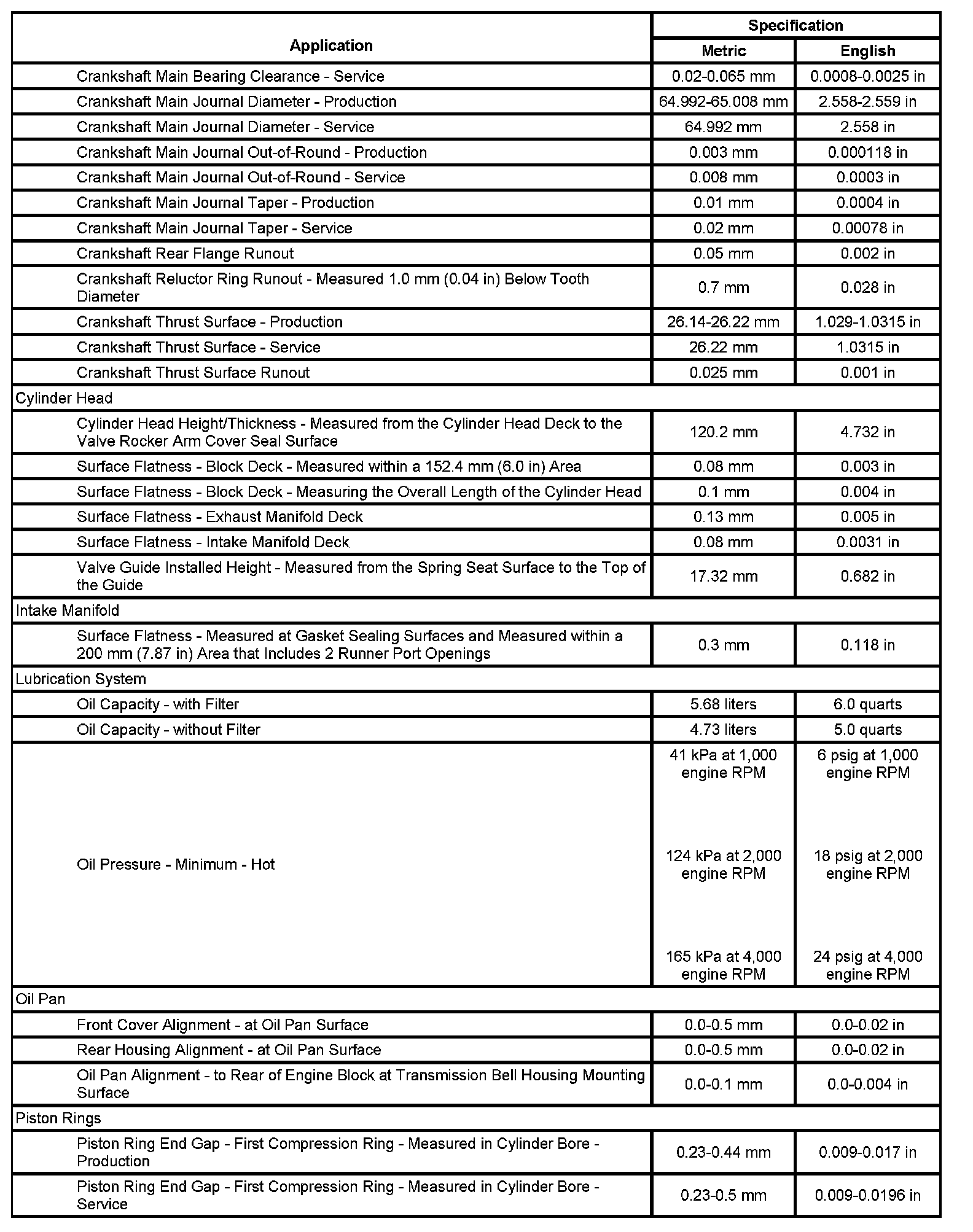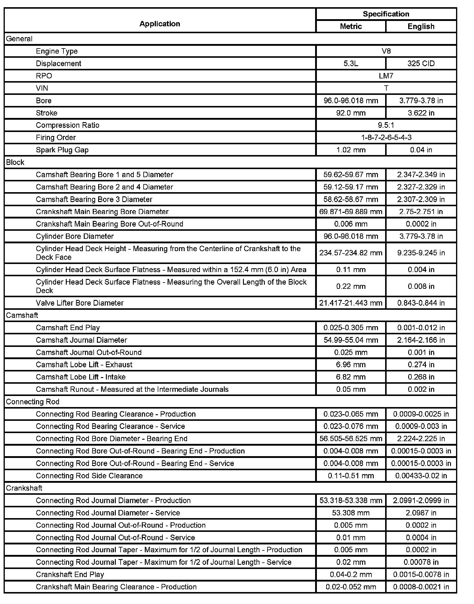 Engine Mechanical Specifications (LM7 VIN T):