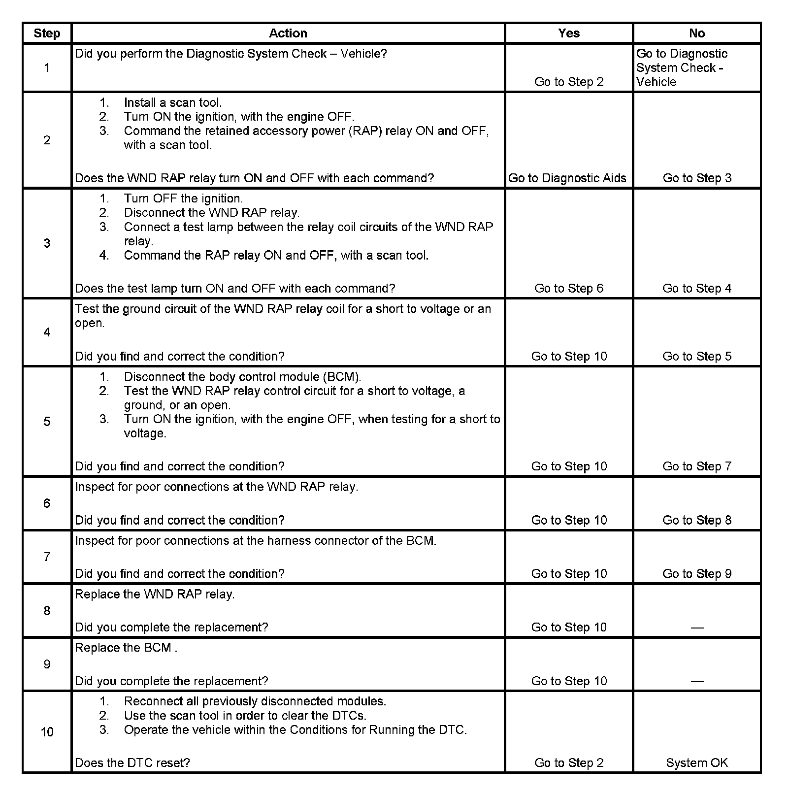 - The BCM detects a short to battery or an open in the WND RAP relay control circuit when the WND RAP relay is not energized.