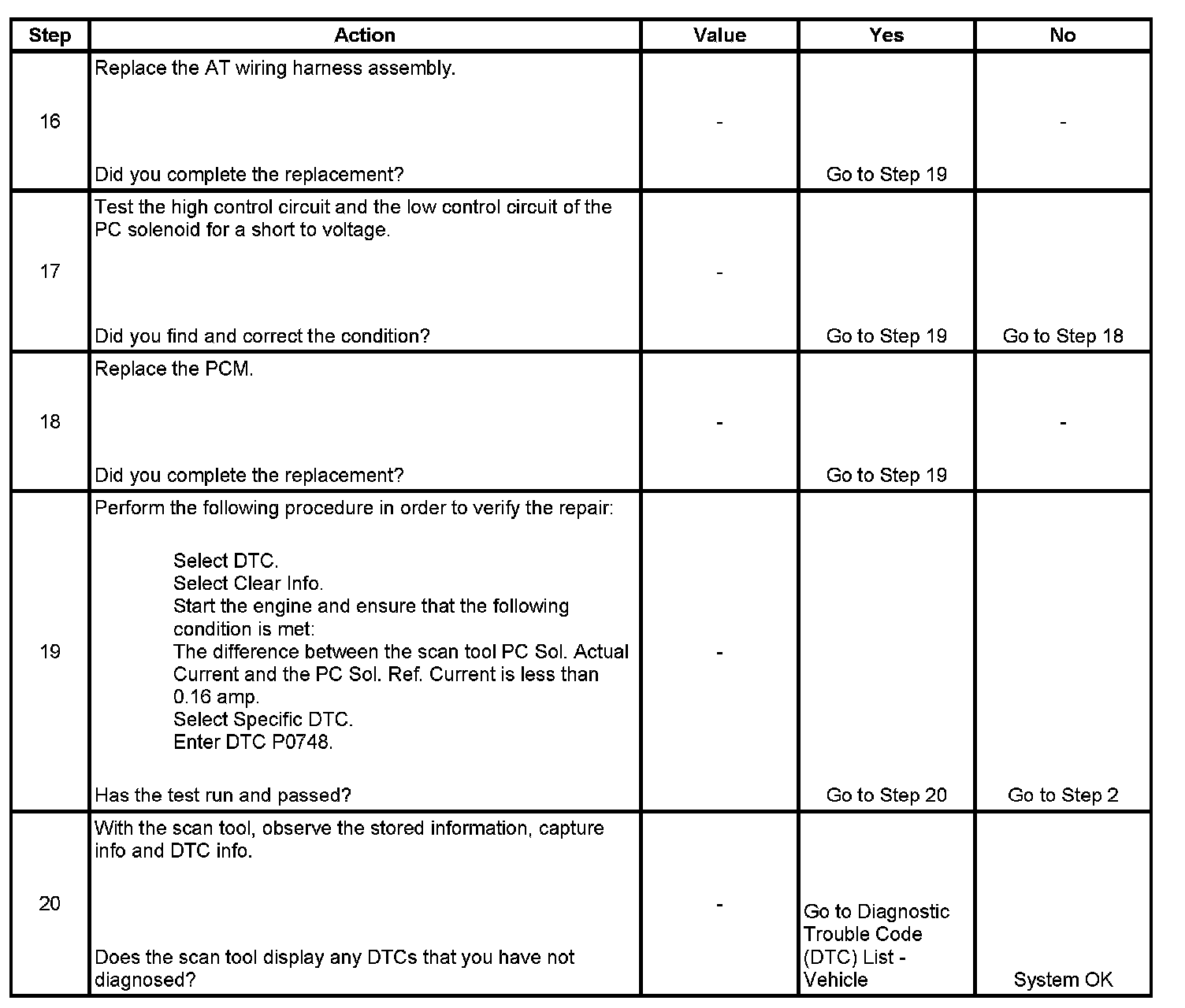 DTC P0748 Pressure Control (PC) Solenoid Control Circuit